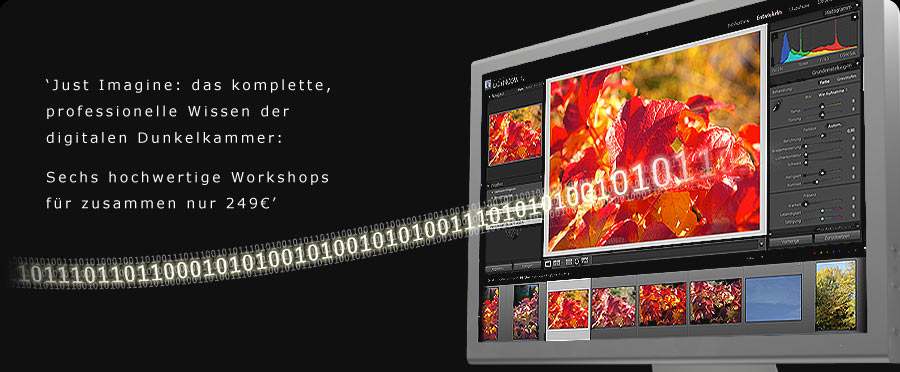 Der perfekte Arbeitsablauf: Das essentielle Wissen der digitalen Dunkelkammer - für den engagierten Amateur bis hin zum Vollprofi - vermittelt in sechs 3 1/2 - stündigen Workshops - monatlich, abends, unter der Woche und bei Ihnen vor Ort oder an Ihrem Computer als Webinar. Sie werden Ihren Arbeitsablauf verbessern, Tips und Tricks erlernen und Monat für Monat besser verstehen, wie Sie das Beste aus Ihren Bildern herausholen. Hier bekommen Sie genau das Wissen, das Sie benötigen, um Ihre fotografischen Ideen umzusetzen.